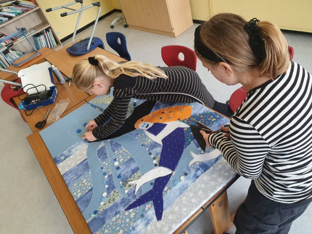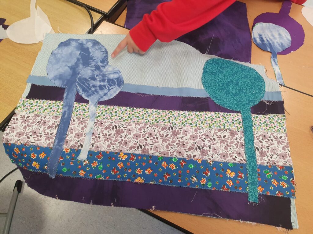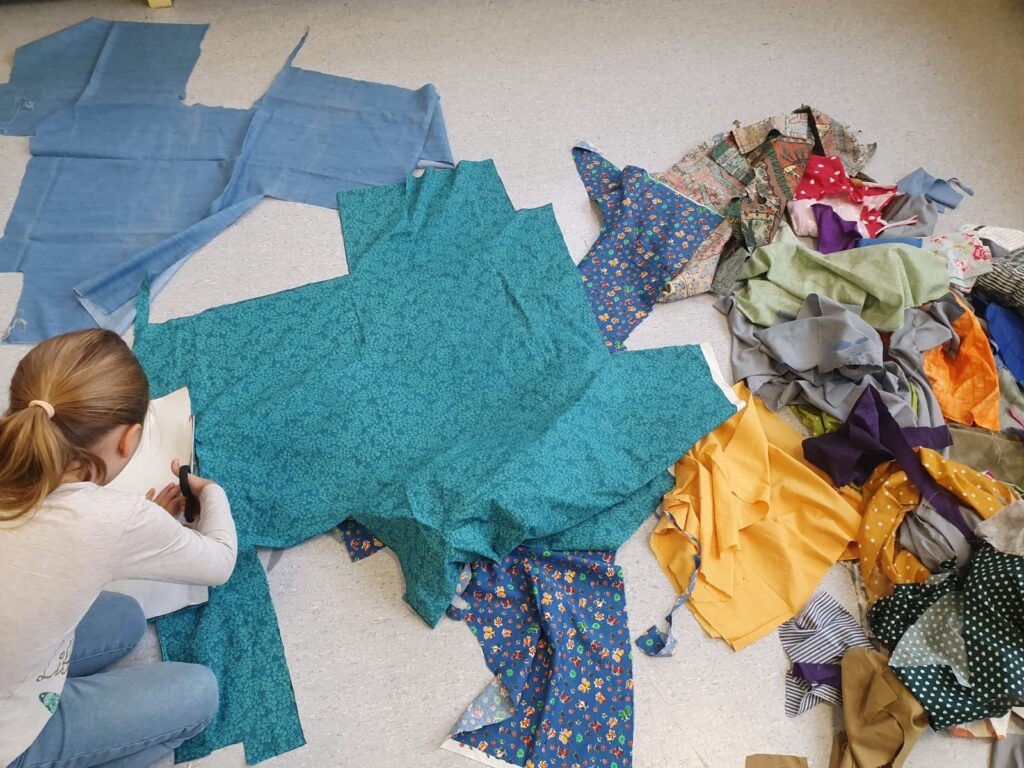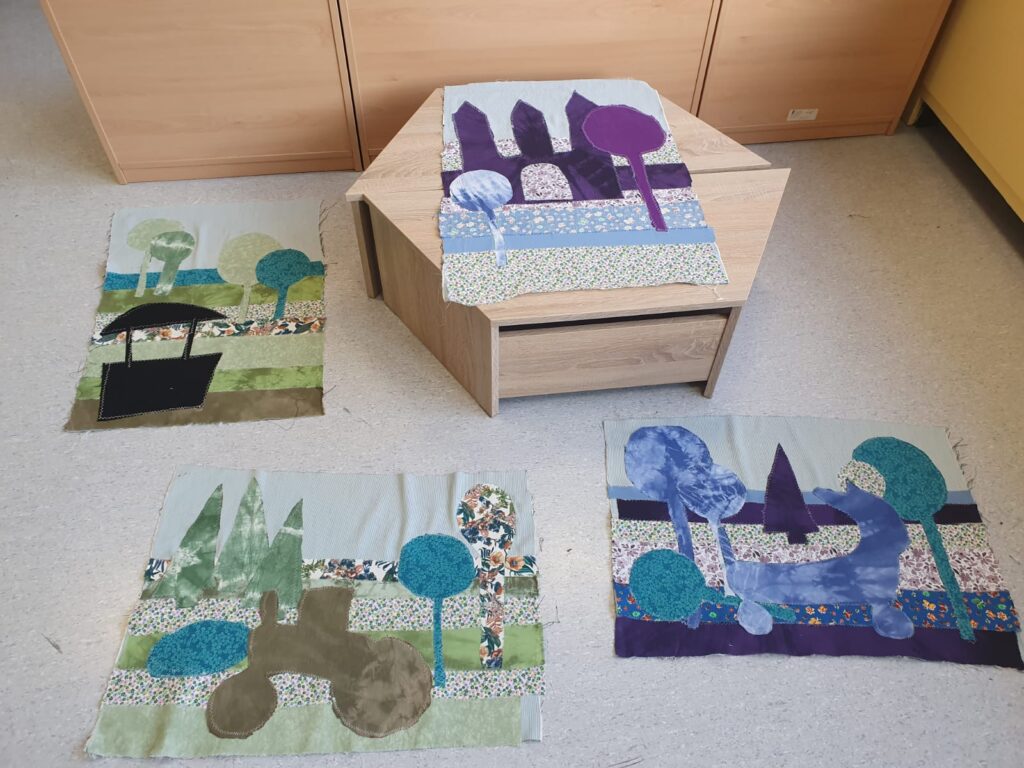 Viele nähbegeisterte Kinder haben sich mit Frau Kruze getroffen, gemeinsam Geschichten erfunden und diese Geschichten mit Hilfe von Stoffen und Nähmaschine „gemalt“.