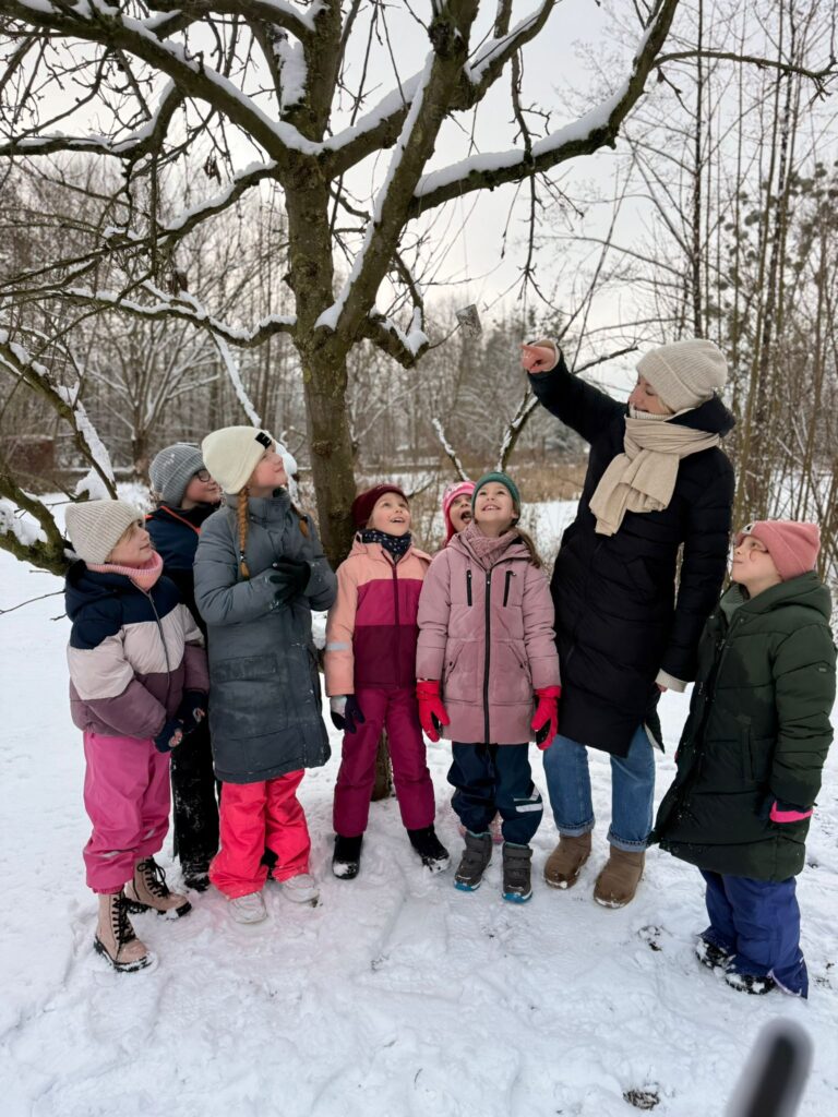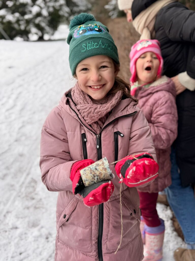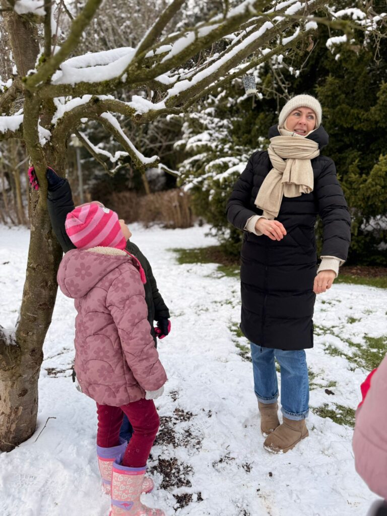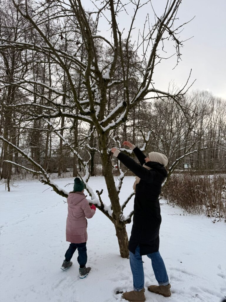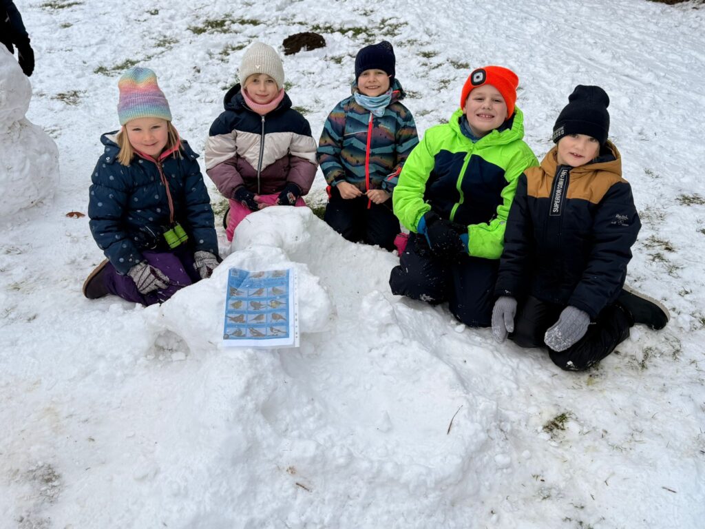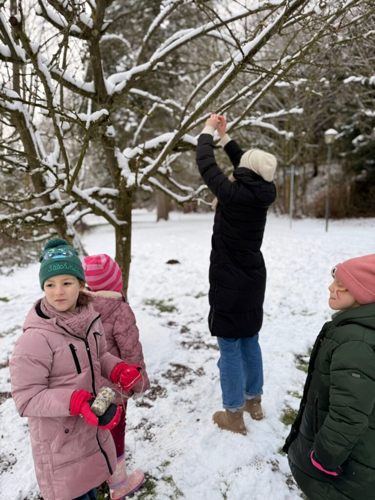 Wir haben ein Iglu gebaut und dann haben wir Meisenknödel aufgehangen.