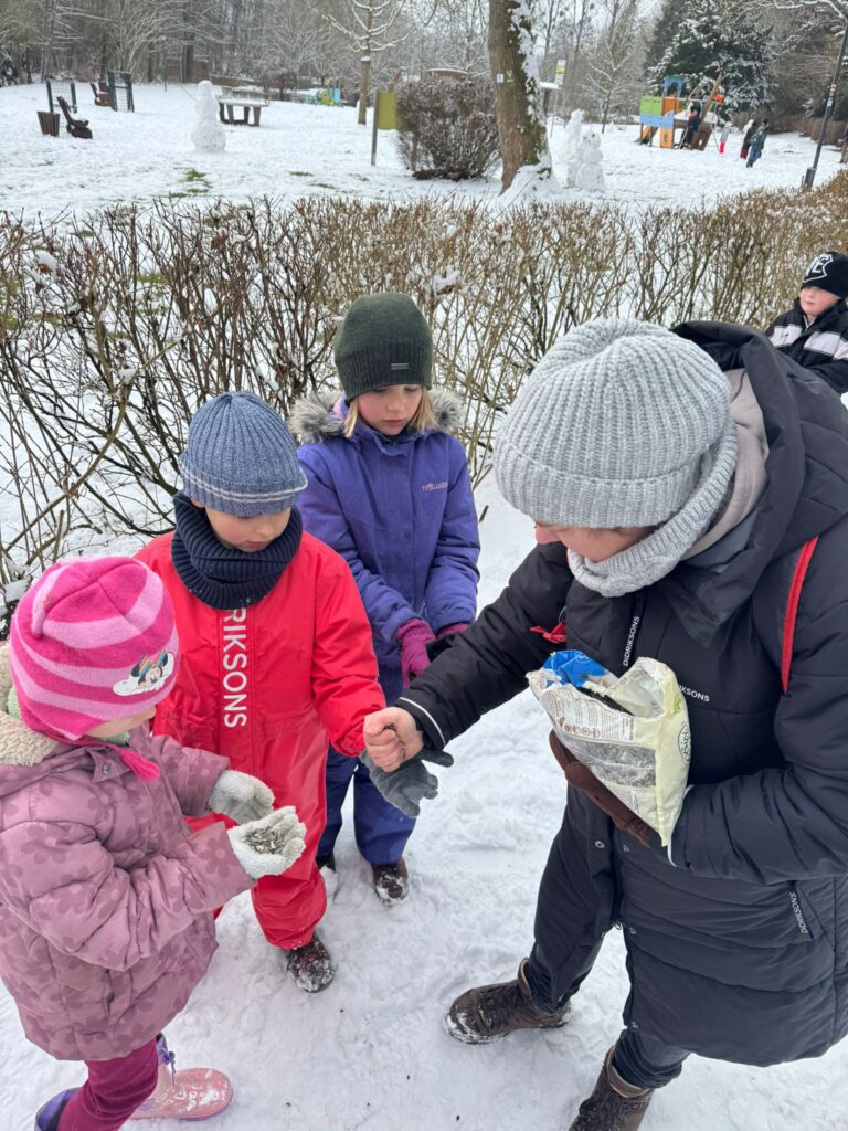 Da noch etwas Vogelfutter übrig war durften die Kinder dies im Kurpark verteilen.